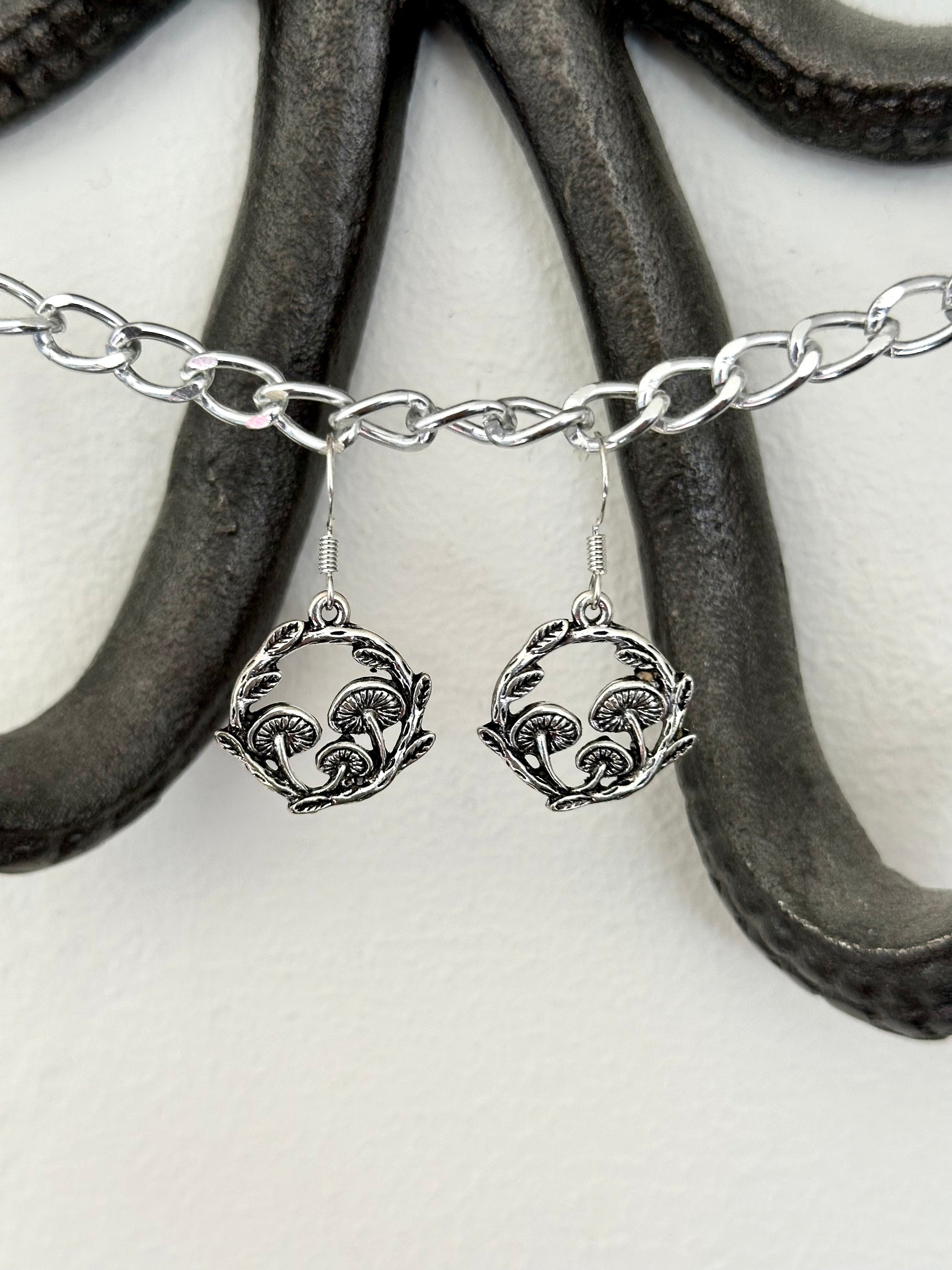 Embrace the enchanting allure of the forest with these handcrafted Silver Mushroom Earrings. Featuring intricately designed mushroom charms, these earrings add a touch of nature-inspired whimsy to any outfit!